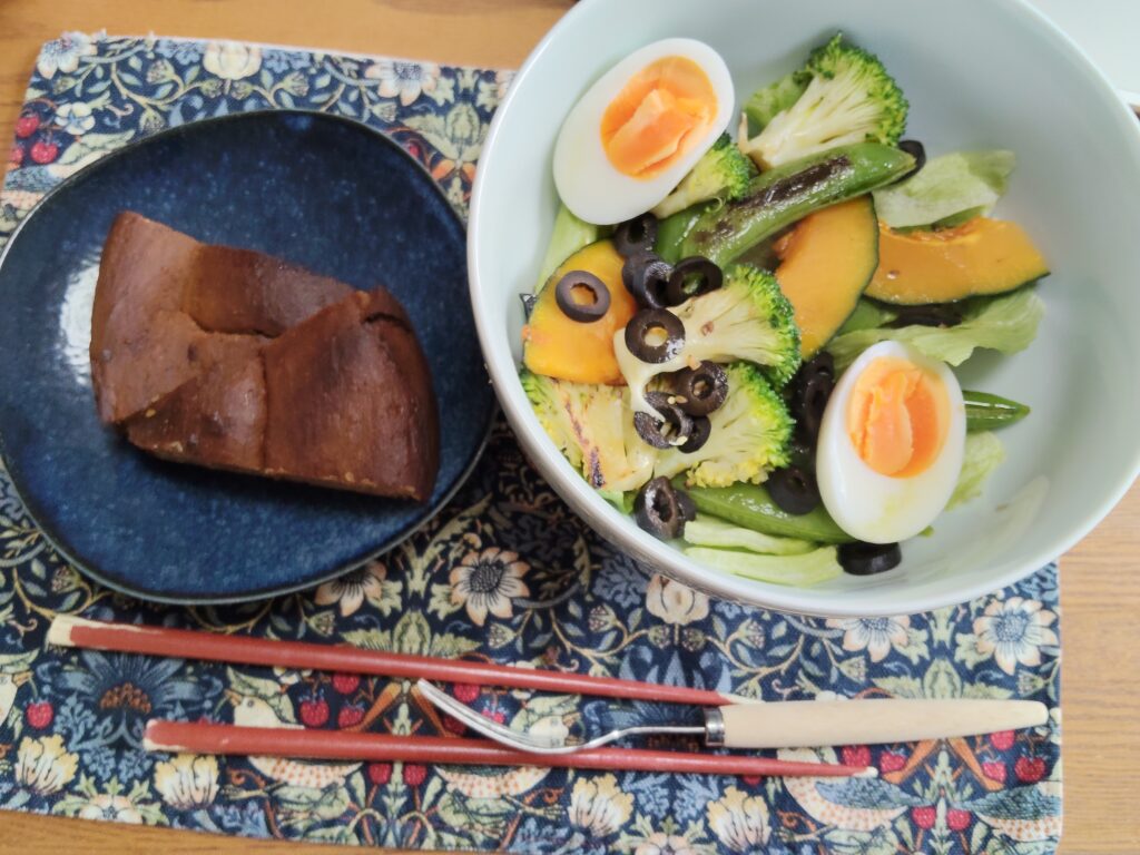 13:00 昼食 ゆで卵1個、野菜、バナナプロテインケーキ